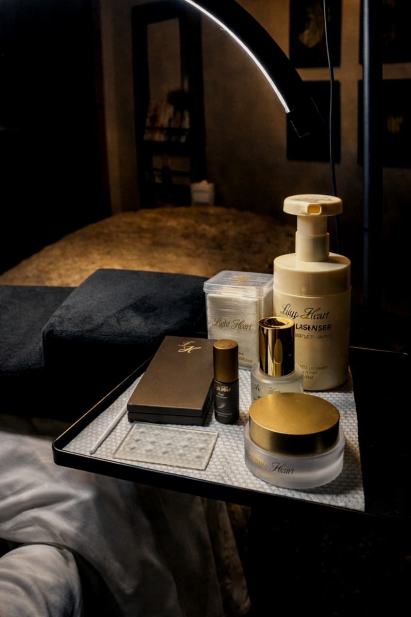 I use materials chosen for consistency, reliability, and material integrity, including Light Heart Lash.
