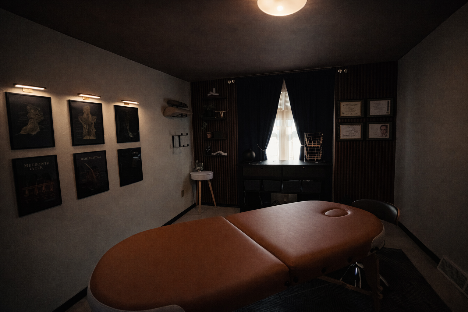 You’ll be welcomed into a quiet, thoughtfully prepared in-home studio designed to feel private and professional. This space is maintained with high standards of cleanliness, organization, and discretion.